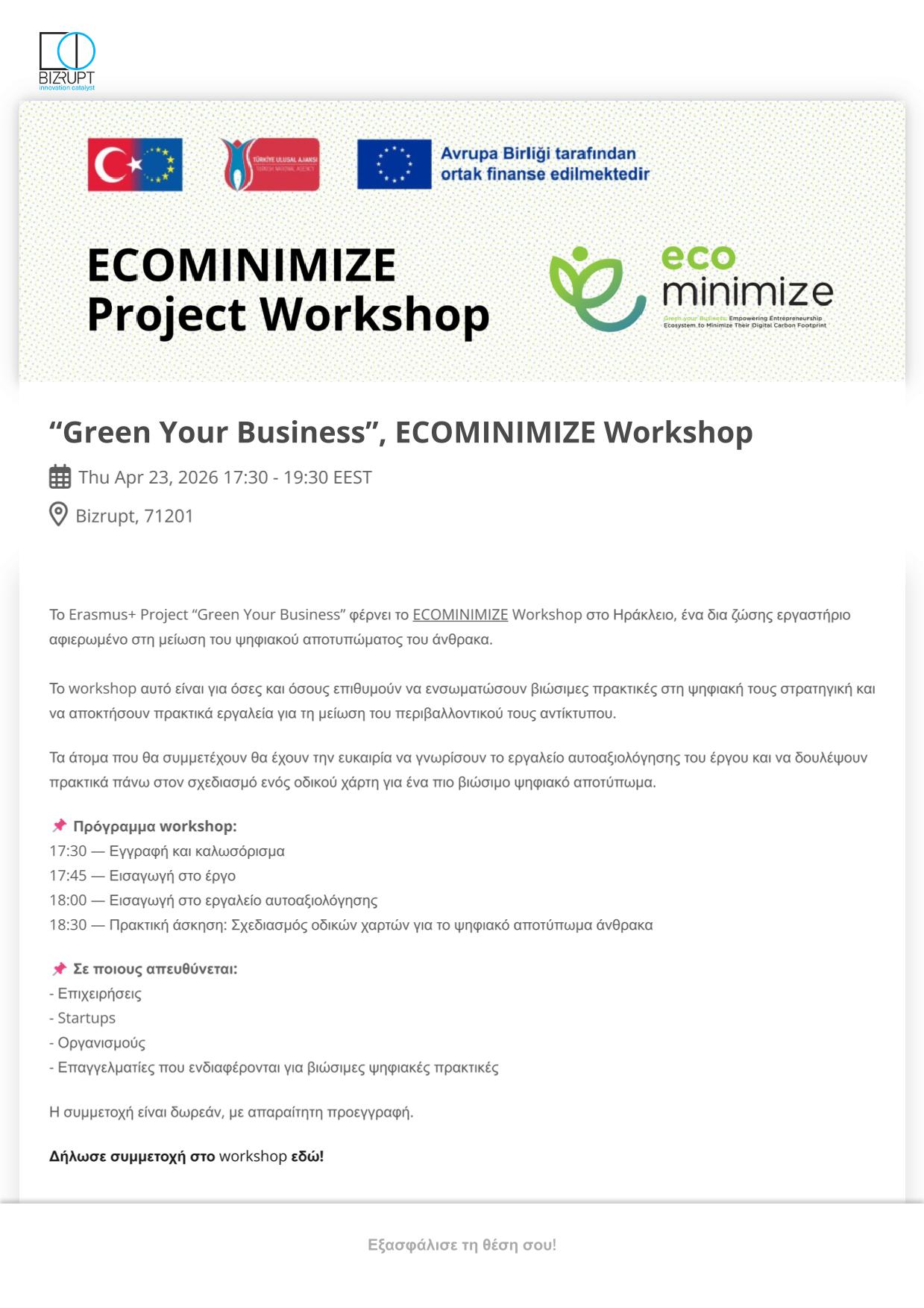 Ευκαιρίες για τη συμμετοχή σε εκδηλώσεις και διαγωνισμούς επιχειρηματικότητας.